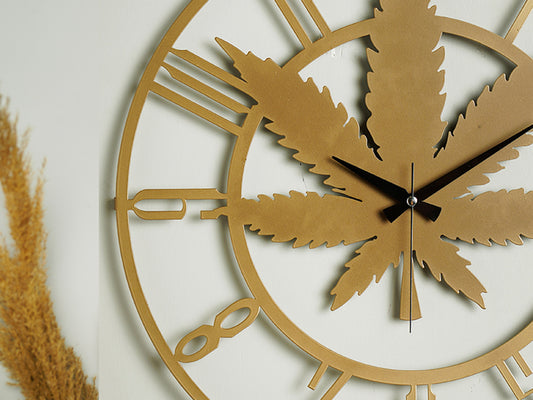 Muyika Gold Cannabis Oversized Metal Wall Clock 20" | Silent Motor