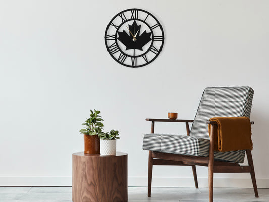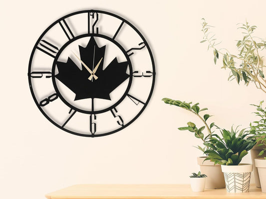Muyika Maple Leaf Roman Numerals Oversized Metal Wall Clock 20" | Silent Motor