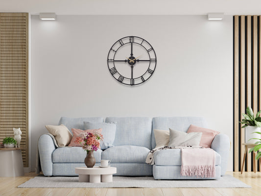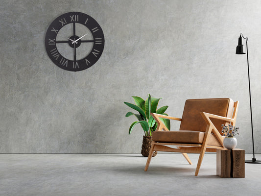 Muyika Roman Numerals Oversized Metal Wall Clock 20" | Silent Motor
